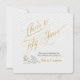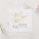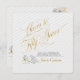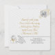 De nossos Parabéns para Cinquenta Anos coleção de aniversário de casamento de 50 anos com listras diagonais em cinza prateado sobre branco, rosas brancas com folhas douradas e tipografia de folha de ouro falso com detalhes do evento no verso e nome do casal e data do evento na frente.