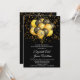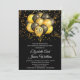Um convite de aniversário de bodas de ouro 50º elegante e festivo com balões e confetes dourados e pretos e tipografia em branco contrastando com o tipo clássico sans serif. Este convite tem um estilo festivo com contraste ousado e moderno. personalize para qualquer aniversário de bodas.