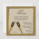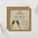 Convite de festa de aniversário de bodas de ouro elegante feito em um padrão de redemoinho em tom dourado e uma área de texto semitransparente com borda em tom dourado no centro. Gráficos de duas taças de champanhe finalizam este convite impressionante. O texto em preto e amarelo dourado é totalmente personalizável para atender às necessidades do seu evento. Um convite encantador para esse dia especial.