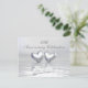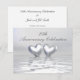 Um convite de bodas de prata de 25 anos prateado com dois corações de prata flutuando na água. Personalize o texto de exemplo no verso com suas próprias informações para o seu evento.