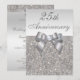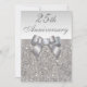 Convites personalizados elegantes e personalizados para celebração de aniversário de casamento de prata dos 25 anos com imagem impressa em prata brilhante e glitter sequins jóias, padrão de gemas, imagens de laços e fitas brilhantes e impressos e diamantes digitais bling jóias em um fundo gradiente prateado chic.