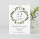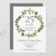 Com uma elegante grinalda de folhagem florestal, este convite de aniversário de casamento de 25 anos botânico e sofisticado pode ser personalizado com as suas informações especiais de aniversário de prata. O verso apresenta uma grinalda correspondente que enquadra as datas do aniversário em texto branco elegante sobre um fundo prateado. Concebido por Thisisnotme©