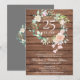 Com uma delicada grinalda floral em aquarela sobre um fundo de painéis de madeira rústica, este convite botânico chique de aniversário de casamento nº 25 pode ser personalizado com as suas informações especiais de aniversário de bodas de prata. O verso apresenta uma grinalda floral correspondente emoldurando as datas do aniversário em texto branco elegante sobre um fundo prateado. Concebido por Thisisnotme©