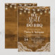 Luzes de Corda Convite de Aniversário Ainda Fazemos, cartão de convite rústico com fundo rústico e de madeira.