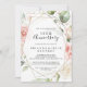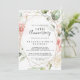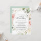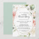 Este convite de aniversário de bodas geométrico dourado verde 50 é perfeito para uma celebração de aniversário de casamento rústico. O design apresenta folhagem verde e dourada pintada à mão com flores rosa, rosadas e brancas, adornando uma moldura geométrica elegante.