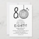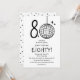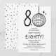 Faça 80 anos com estrondo com nossos convites de aniversário de 80 anos modernos e elegantes. Nosso design apresenta uma bola de discoteca desenhada à mão única formando o '0' no número 80, estrelas retrô espalhadas e um modelo de festa casual em uma fonte manuscrita emocionante, tudo em um fundo branco atemporal. Este convite especial une diversão e elegância, um verdadeiro reflexo do que é fazer 80 anos.