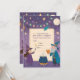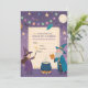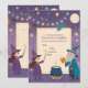 Convide seus pequenos feiticeiros para uma celebração mágica com este Convite de Aniversário de Bruxos e Feiticeiros! Com bruxos encantadores, bruxas brincalhonas, livros de feitiços flutuantes, varinhas brilhantes e estrelas cintilantes, este design captura um tema de fantasia caprichosa. As cores ricas de roxo, azul e dourado, combinadas com efeitos de luz mística, criam uma atmosfera divertida e mágica. Um espaço em branco no centro permite que você adicione facilmente detalhes da festa, como data, hora e local. Perfeito para festas de aniversário de crianças ou adolescentes com um toque de magia!