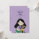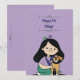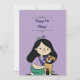 Este convite de aniversário apresenta uma ilustração de uma jovem menina que abraça um adorável cachorro marrom. Este é um ótimo cartão de aniversário para o aniversário de um cachorro.
