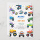 Bipe! Vroom! Monstros caminhões, garoto, convite de aniversário. Colorida e super fofa. Nome editável, endereço.