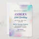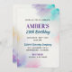 Esta design pintada é perfeita para uma festa de aniversário moderna. O design é colorido e pronto para comemorar suas ocasiões favoritas, com tinta púrpura, azul, rosa e dourada em uma canvas branca.