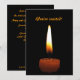 Envie este convite elegante para um evento muito especial, ou apenas uma festa divertida. Ele apresenta uma fotografia simples de uma vela marrom com uma chama adorável em tons de branco, amarelo, dourado e laranja. Está configurado em um fundo preto puro. Outra vela está na parte de trás junto com todas as informações importantes. O texto é formulado para um aniversário de casamento, mas pode ser facilmente alterado para se adequar à sua celebração única.