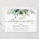 Este convite de festa de aniversário com texto personalizado apresenta eucalipto aquarelado pintado, folhas verdes com caligrafia moderna. Para personalização mais avançada deste design, clique no link "Personalizar ainda mais". Itens correspondentes também estão disponíveis.