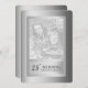 O convite para o 25 do Silver Border Anniversário apresenta um fundo prateado em ambos os lados traçado com uma borda metálica de prata igualmente brilhante, juntamente com um local para adicionar sua foto na frente. Ideal para qualquer festa de aniversário de casamento de Silver. © Manhã 6