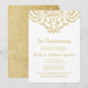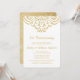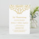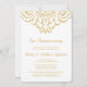 Este convite de aniversário de casamento elegante e vintage apresenta um delicado enfeite de dama dourada em um fundo branco.