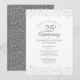 Com delicados corações de amor em confete de prata. Personalize com as suas informações especiais de aniversário de prata de vinte e cinco anos em letras prateadas elegantes. Desenhado por Thisisnotme©