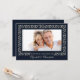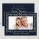 Elegante Azul Marinho | Convites para Aniversário de Casamento de 30 Anos com design de Moldura de Folhas com Brilho Prata e foto e texto personalizados. Adicione sua própria imagem e personalize os nomes, data e todos os detalhes dos seus Convites. Cartões, lembranças e presentes correspondentes disponíveis na Categoria de Aniversário de Casamento de nossa Loja.
