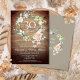 Com uma delicada grinalda floral em aquarela sobre um fundo de painéis rústicos boho de madeira, este convite botânico chique de aniversário de casamento de 30 anos pode ser personalizado com as informações do seu aniversário de pérolas. O verso apresenta uma grinalda floral correspondente emoldurando as datas do aniversário em texto branco elegante sobre um fundo de pérola. Concebido por Thisisnotme©