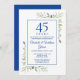 Com delicadas folhagens de jardim country em aquarela, este convite de aniversário de casamento sofisticado pode ser personalizado com as informações da sua celebração especial de 45 ou 65 anos de casamento, com um fundo azul safira no verso. Criado por Thisisnotme©