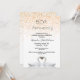 Um simples e elegante convite de aniversário de casamento de ouro de 50 anos com o amor como tema. Dois belos cisnes curvando as cabeças juntos e formando um coração. Fundo branco. Modelos para nomes e detalhes da festa. Letras pretas. Com chuva de confetes dourados.