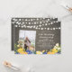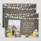 Celebre seu dia especial com este convite personalizado de aniversário de casamento com foto. Este design apresenta lindas flores azuis e amarelas e luzes de corda em um fundo de madeira rústica. Você pode personalizar o texto para qualquer ano. Substitua a foto de amostra pela sua própria foto. Suprimentos para festa combinando disponíveis na minha loja BaraBomDesign.