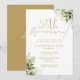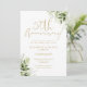 Este convite de aniversário de casamento de 50 anos com folhas de folhagem botânica elegante pode ser personalizado com suas informações em tipografia dourada chique com suas datas especiais no verso. Projetado por Thisisnotme©