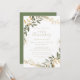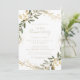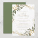 Este convite de aniversário de casamento de 50 anos com greenery geométrica dourada é perfeito para um evento moderno. O design apresenta uma bela moldura geométrica dourada com folhas verdes elegantes. Altere o número para celebrar qualquer marco de aniversário.