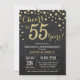Convite de Aniversário de Casamento de 55 Anos Quadro de Giz Preto e Dourado. Cinquenta e cinco Anos de Casamento. Fundo de Diamante Brilhante Preto e Dourado. Confetes Dourados. Aniversário de Adulto. Festa de Aniversário de Homem ou Mulher. Para personalização adicional, clique no botão "Personalizar" e use nossa ferramenta de design para modificar este modelo.