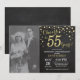 Aniversário de Casamento de 55 Anos com foto personalizada. Convite de Quadro de Giz Preto e Dourado. Aniversário de Casamento de Cinquenta e Cinco Anos. Fundo de Diamante Brilhante Preto e Dourado. Confete Dourado. Aniversário de Adulto. Festa de Aniversário de Homem ou Mulher. Para personalização adicional, clique no botão "Personalizar" e use nossa ferramenta de design para modificar este modelo.