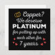 Design divertido, perfeito para qualquer um que está casado há 7 anos e para uma cerimônia de renovação do voto de casamento. Ele faz um excelente combinando roupa para casais! Cobre? Nós merecemos Platinum por se manter juntos por 7 Anos de citação para um casal que se casou há 7 anos ou um casal renovando votos de casamento no seu aniversário de cobre. Você é um marido ou mulher romântico? Acenda seu estilo com esta arte! presente de excelente para seu amigo que se casou há 7 anos, marido ou esposa de 7 anos, ou pai e mãe celebrando seu aniversário de casamento de 7.