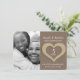 Convite de aniversário de casamento de madeira com foto personalizada. Lindo efeito esculpido em forma de coração de madeira com gráficos impressos convite de aniversário de 5 anos de casamento personalizado com detalhes da festa de aniversário de casamento e foto do casal feliz. Arte gráfica original em madeira e design por Sarah Trett para www.mylittleeden.com e www.mylittleedenweddings.com
