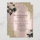 Um moderno, chique e glamouroso com gotas de ouro e rosas pretas sobre fundo rosa dourado.
