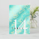 Adicione sofisticação às comemorações de aniversário de casamento de 11 ou 44 turquesa com este cartão de mesa, que contém uma elegante inscrição em um mármore amarelo e um fundo azul esverdeado. Personalizar com o número da tabela. O reverso mostra design idêntico. Design © W.H. Sim. Mais informações em zazzle.com/expressionsoccasions