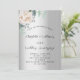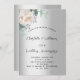 Um fundo de olhar mal prateado. Decorado com uma flor branca, uma flor de pénia e um eucalipto verde de cor aquosa. Personalize e adicione seus nomes e detalhes
