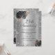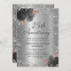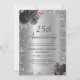 Celebrar 25 anos de amor com este elegante convite de aniversário de casamento do rosa Negro floral e do 25 de estilo metálico. Apresentando um design brilhante de cinza prateada com cinzas pretas e arranjos florais sobre um fundo luxuoso de folha metálica prateada, este convite adiciona um toque de brilho e sofisticação à sua celebração. Totalmente personalizável, é perfeito para honrar seu aniversário — seja planejando um janto íntimo ou uma grande festa. Ponha o tom para uma noite cheia de amor, risos e memórias inesquecíveis.