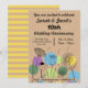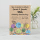 Um Convite de Casamento de Estilo Retroativo com flores e círculos coloridos. Todo texto pode ser personalizado e a parte traseira pode ser usada para mais informações, se necessário.