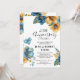 Convite aniversário de casamento do ouro azul floral