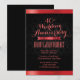 Convites de Aniversário de Casamento em Rubi Damasco Preto Sofisticados.
