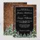 Convite de aniversário de casamento. Madeira marrom rústica, fundo nevado e floresta nevada. Estilo country vintage aconchegante. Mais itens estão disponíveis neste estilo em nossa loja. Você pode editar o design ainda mais, alterar cores, fontes e adicionar texto extra clicando no link "personalizar ainda mais".