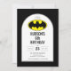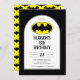 Prepare-se para uma celebração épica com este convite personalizável do Aniversário de criança Batman Shield! Apresentando o logotipo icônico do escudo Batman e texto ousado e dinâmico, este convite define o palco de um super-herói inesquecível. Personalize-o com os detalhes do seu evento para criar um convite único e excitante para o grande dia do seu pequeno herói.