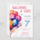 Balões Coloridos convite de festas de Aniversário de criança de Aquarela. Balões coloridos com aspecto aquoso e uma citação divertida, Balões e bolo. Prazer e belo convite de aniversário para uma garota ou um garoto.