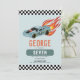 Este design de 7 de aniversário de rapazes modernos e legal apresenta um carro com chamas quentes, com um carro de corridas azul, roda e padrões de motocicletas no verso. O cartão pode ser personalizado com um nome e outros detalhes necessários para o seu partido. Defina como um convite para o sétimo aniversário, mas fácil de editar. A adição perfeita à festa do seu carro quente!