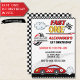 Rápido convite para primeiro aniversario de corrida com carro de corrida vermelho.