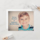 Encomendar estes convites de aniversário de criança personalizados com campos personalizáveis na parte traseira do cartão postal para a localização, data e hora da festa do seu filho. Insira a fotografia do seu próprio filho próximo ao texto azul do seu nome e idade. Adicione as informações de sua parte no preto deste cartão azul-claro personalizado.