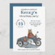 Um filhote de ursos bonitinho espera no carro do pai, pronto para a aventura! Palavras no carro lateral leram "Aventura aguarda". Isso faz um convite de aniversário adorável! Imprima seus hóspedes com arte feita à mão impressa nesses super divertidos convites para motocicletas!