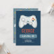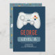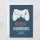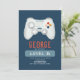 Este design de convite para o aniversário de 8 anos dos rapazes modernos e legal apresenta um design de jogos, com um controlador de jogos, troféu, headset e estrelas, com um fundo azul escuro, e pode ser personalizado com os nomes dos pais e outros detalhes necessários para o seu partido. Defina como um convite de oitavo aniversário, mas fácil de editar. A adição perfeita à festa da criança que ama o jogo!