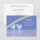 Convite de aniversário de diamante de 60 anos com um arco-íris em um céu azul claro e dois corações de diamante brilhantes flutuando na água. Personalize o texto de exemplo no verso com suas próprias informações para o seu evento.