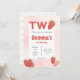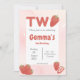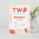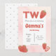 Convite de aniversário tema morango. Letreiro dois brilhante com morangos. Detalhe de bolinhas doce no verso. Vermelho e rosa. Perfeito para bebê ou aniversário de 2 anos de criança. Edite facilmente o texto moderno e divertido. Combina com tema de festa tutti fruity / twotii fruity ou tema berry sweet. Encontre acessórios correspondentes na loja Gemma Harlow Creations ou transfira o design para seus produtos favoritos.