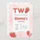 Convite de aniversário temático de morango. Letreiro brilhante com morangos. Detalhe de bolinhas doce no verso. Vermelho e rosa. Perfeito para o segundo aniversário de bebê ou criança. Edite facilmente o texto moderno e divertido. Combina com tema de festa tutti fruity / twotii fruity ou tema berry sweet. Encontre acessórios correspondentes na loja Gemma Harlow Creations ou transfira o design para seus produtos favoritos.