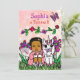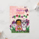 Convites de aniversário de fada de menina Afro-Americana ou Hispânica com estilo de conto de fadas caprichoso e arte dobrável com fadas desenhadas à mão, flores e borboletas. Coral, roxo, rosa, vermelho, verde lima e todo tipo de cores brilhantes lindas!