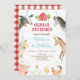 Este convite adorável apresenta animais de fazenda com chapéus de festa e confete.